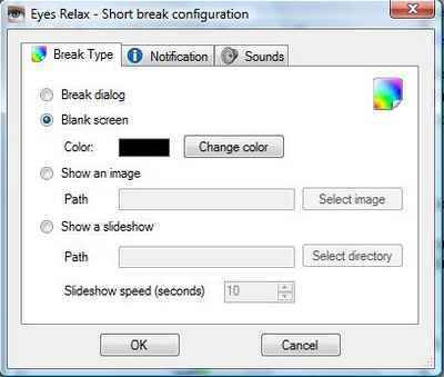 Làm việc lâu trước máy vi tính là một trong những lý do khiến mắt bị nhức và mỏi. Những khoảng nghỉ giữa giờ sẽ giúp mắt bạn thư giãn và bảo vệ sức khỏe đôi mắt. Eye Relax là công cụ hữu ích để nhắc nhở bạn thực hiện điều này.