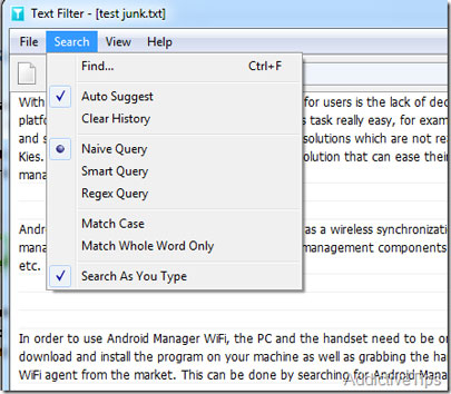 Text Filter là một tiện ích được thiết kế để cho phép bạn đọc, tìm kiếm và lọc các file văn bản một cách dễ dàng. Chương trình sẽ lập tức lọc khi bạn nhập cụm từ cần tìm kiếm, tất cả các thuật ngữ xuất hiện nổi bật trong màu tương phản.